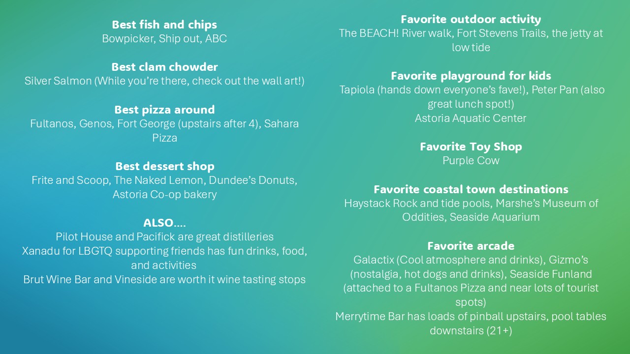 *Check out Seth the Magic Man at his Magic Shop downtown Astoria, he will probably show your kiddos some fun tricks!